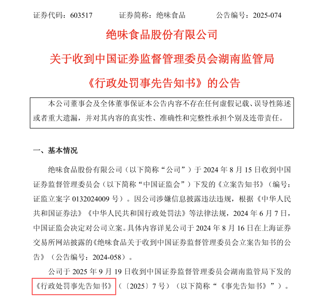 绝味食品(维权)公告收到湖南证监局的《行政处罚事先告知书》:公司竟然因为少计了营业收入被罚。