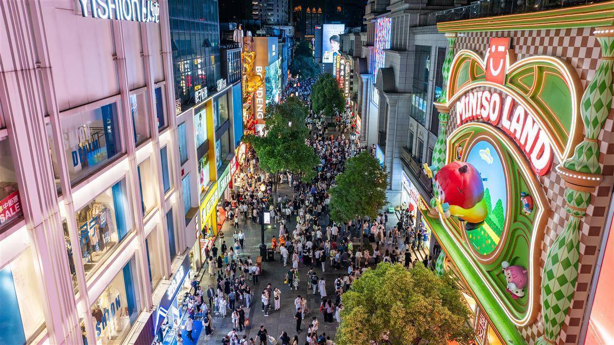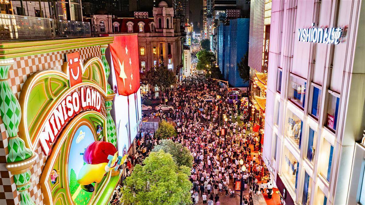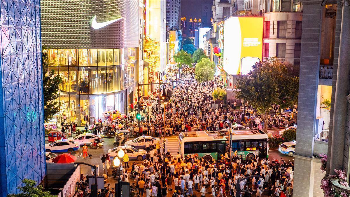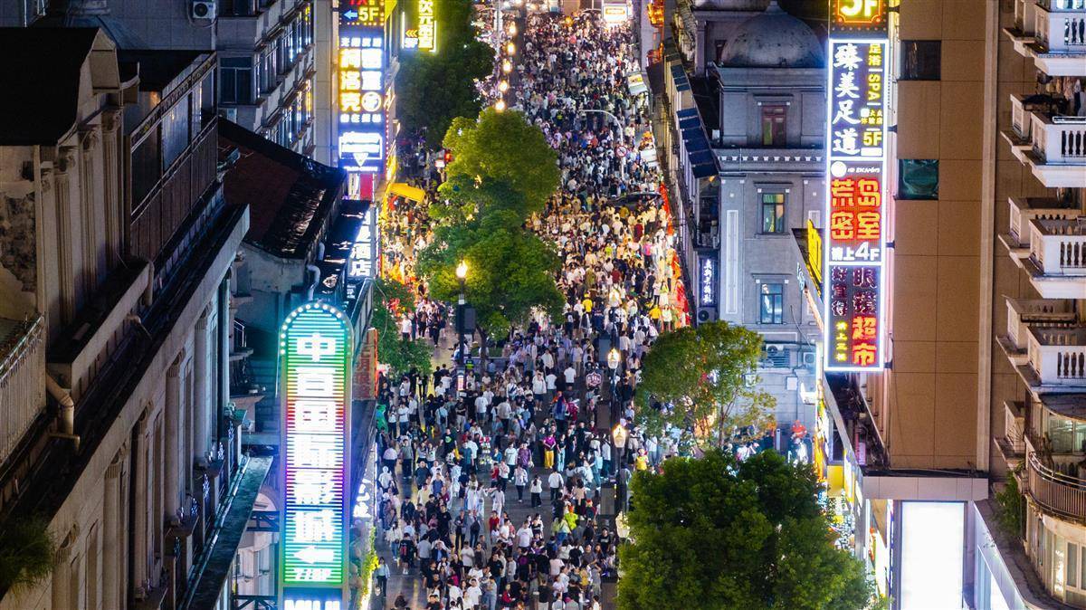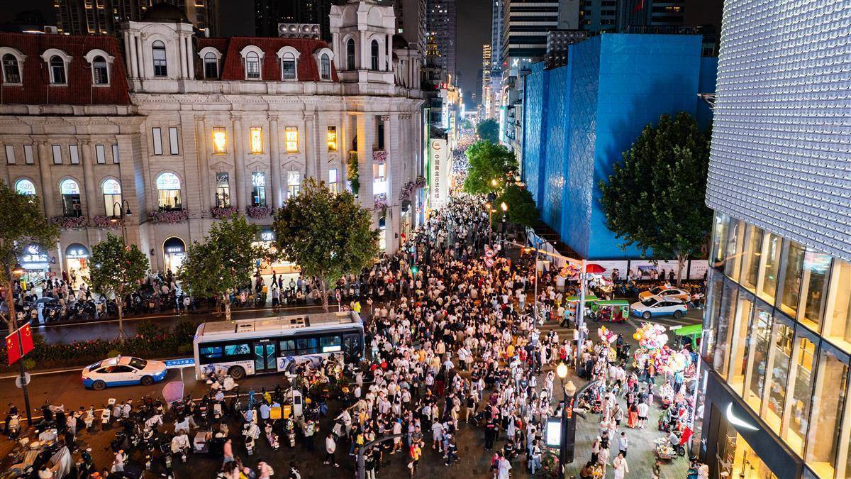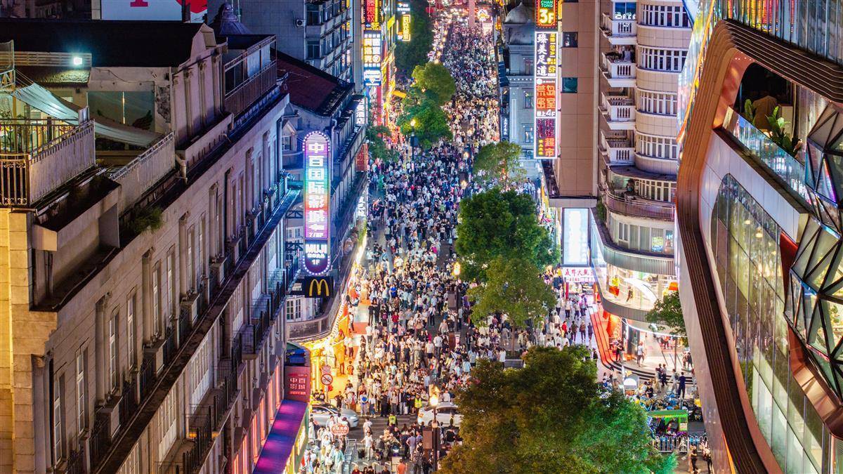 2025年10月2日,“十一”小长假第二日 股易配,大批市民游客晚上走进武汉市江汉路步行街,川流不息的人群一眼望不到头。(湖北日报全媒记者 何宇欣 摄)